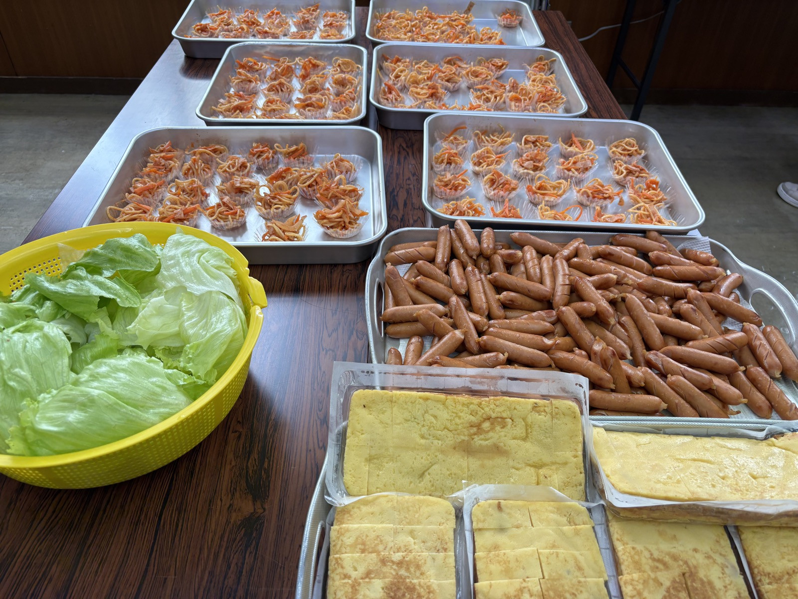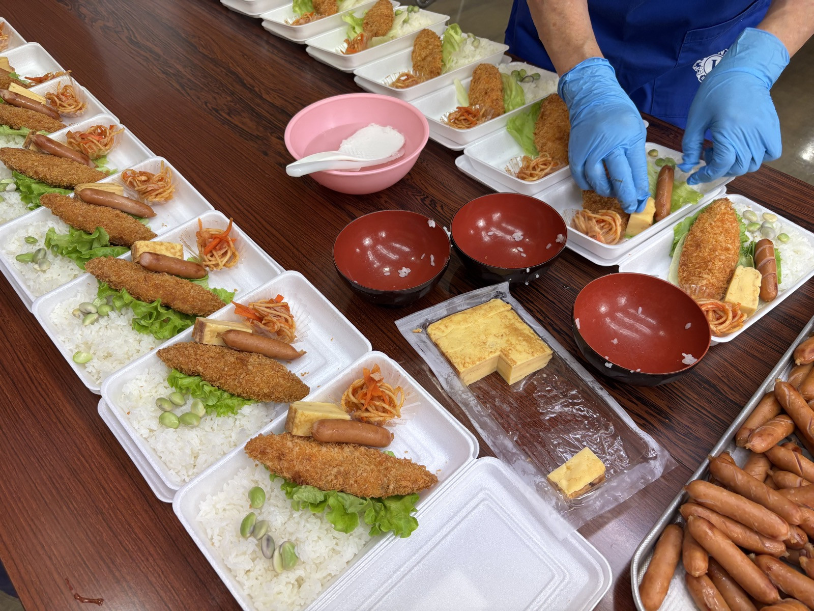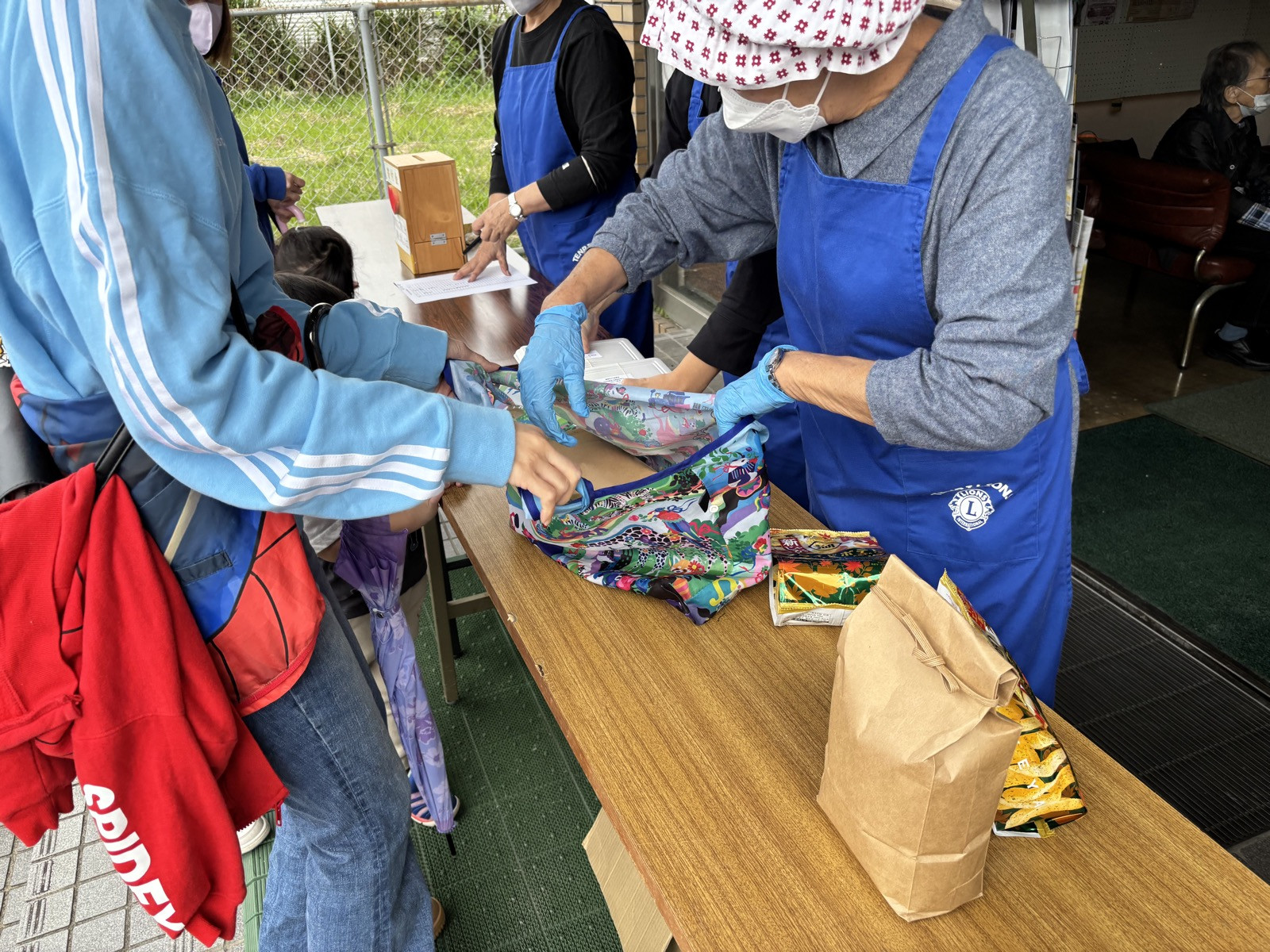 今回は唐揚げ弁当大盛りに加えて、お土産がたくさんありました。ポテチ、ジュース、インスタント味噌汁、マクドチケットを配布しました。